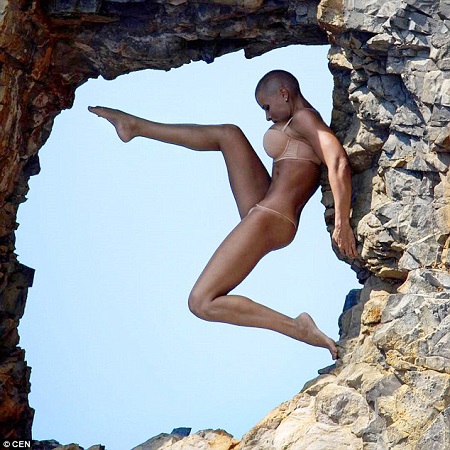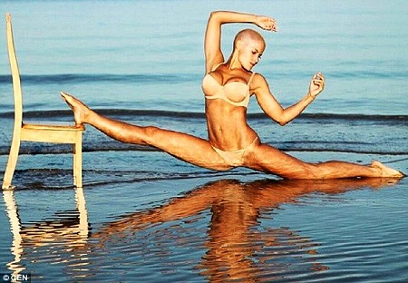 The 34-year-old Russian mum from the Russian capital of Moscow, - who also sports a shaved head - has become an internet sensation thanks to her semi-nude yoga poses, which have drawn plenty of attention online.